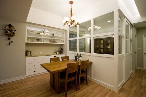餐厅旁打掉的穿透墙面后方规划为半开放式书房,视野拉长了,也放大视觉坪效。