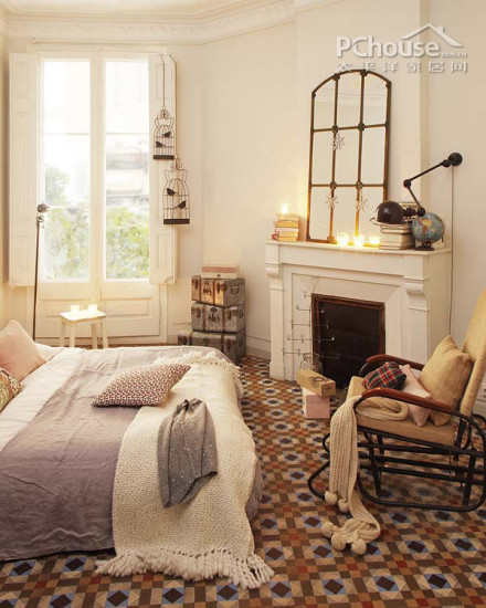 编辑点评:卧室简单典雅,挂着的鸟笼装饰精致可爱。