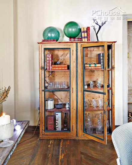 编辑点评:旧木的落地橱柜旋转在旧木的地板上,极有时光的味道和痕迹。