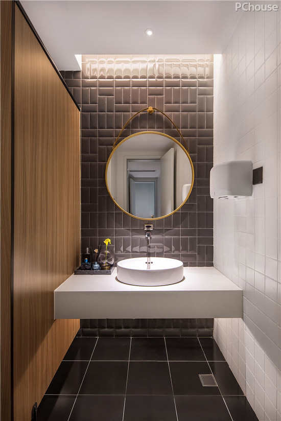 主要材料:大理石,木饰面,灰色烤漆,墙布硬包,清瓷水泥板