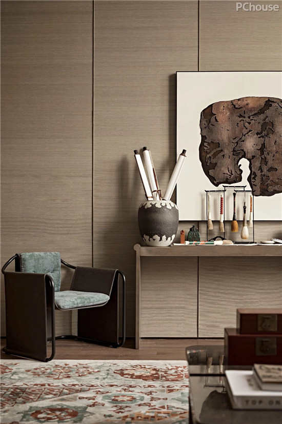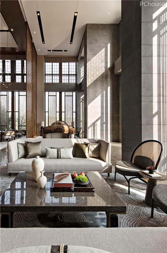设计师黄全以个性化的设计手法贯穿始终,传达大气俨然的精神风度,将文化回归作为视角和出发点,自然的质感与艺术的气息在此融为一体。