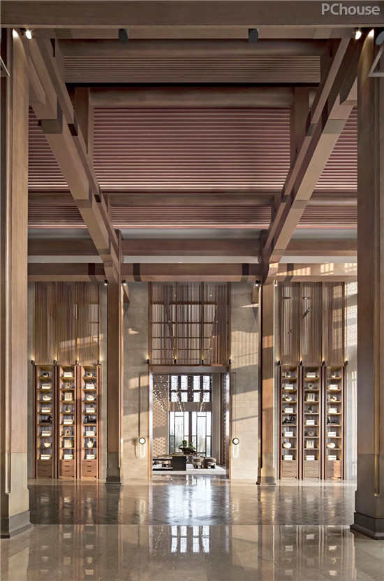 漫长的廊道,设计师以五行之“木”为构建元素,蓬发生命。那一窗一木、一案一砖无不透露出中式的秩序感和礼仪感,历经匠心研磨,用最雍正端庄的造艺,为齐鲁文化奠定肃穆的基调。建筑的雄伟气脉,通过“木”的温润力量,柔和成一个圆融、生动的世界。