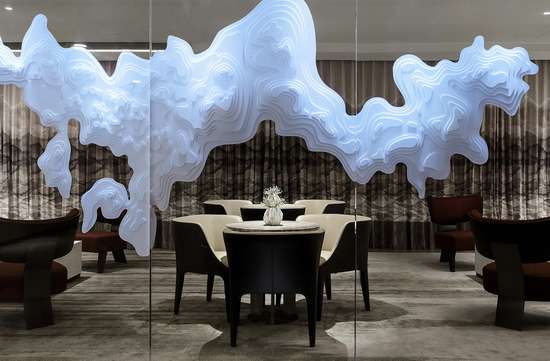 杭州景瑞阳明谷会所设计纳入山湖自然清秀流雅的风貌,以现代艺术会所为主题,将大量前卫流丽的装置艺术作品,以时尚的手笔融入空间,呈现一派静谧深远的当代意境。整体空间将优雅与现代人的审美相结合,浮华中有超脱,自然轻逸中容纳着规则美。
