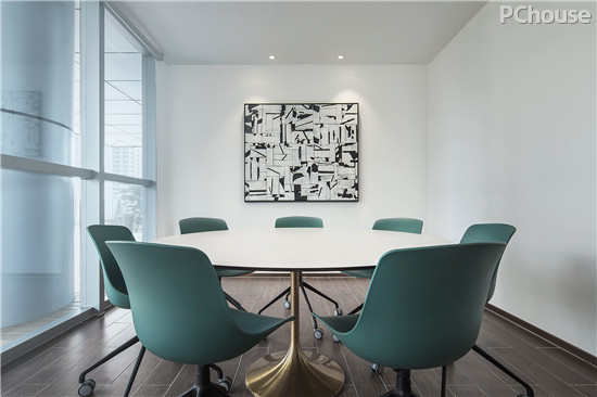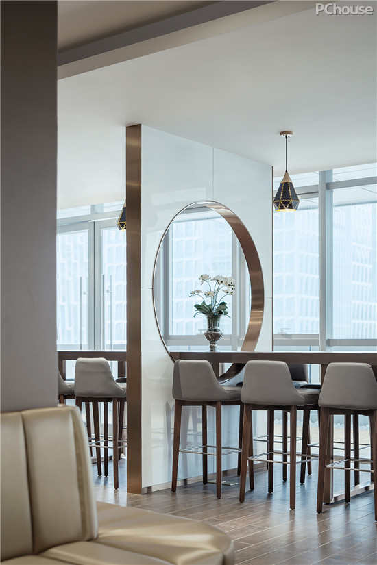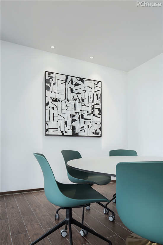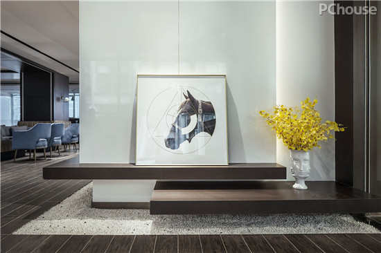 细细揣摩,布艺与沙发在质感上的对立几乎处处可见,配上桌椅的光度,看似不搭边际,却在型与面的处理上,显得极为合理。