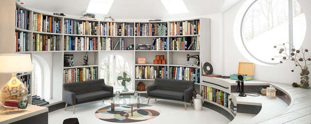 1、书房作为办公区域,用一个书柜形式来作为隔断,是再好不过的了。更值得一提的是,在隔断柜的下方还预留了放电视的区域,真是一举多得啊。