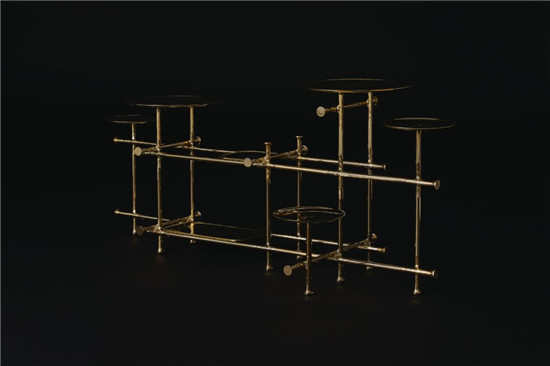 本次展出的作品特选用具有中国悠久历史特性的铜作为原材料,结合现代的制造工艺,从而打造具有中国风的原创设计作品。设计师采用了有趣的数字算法来生成一种独特的结构,以套榫形式搭建成可以无限延伸的家居茶几。设计师借用当代设计观与技术,使得传统木作的灵魂“榫卯”,拥有了介入使用者真实体验和生活脉络的力量。