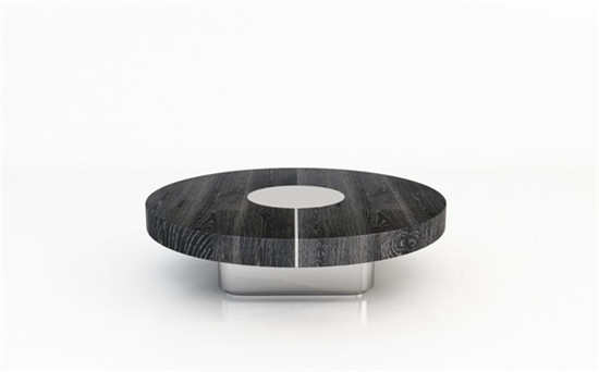 橡木染黑再染白,原生态的纹理年轮更凸显出时光感,整个茶几未做多余的结构装饰,在其中融入银色金属件营造出现代摩登感,通过一种柔软、连续的几何形态勾连出时空(时光感和未来感)交替感。