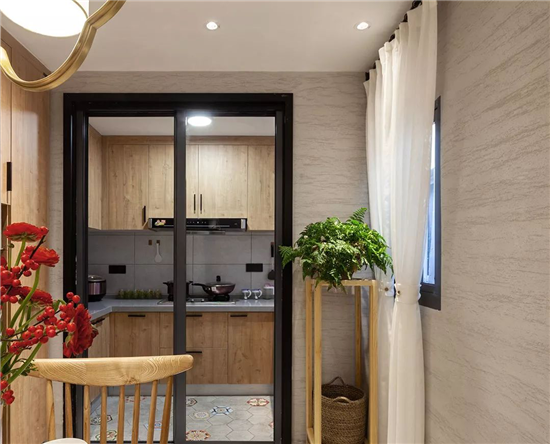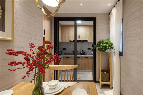 原有的房屋并没有严格意义上的餐厅功能只是在厨房有一张餐桌,改造后设计师在客厅与厨房中间加入了餐厅。