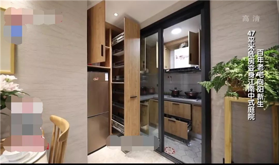 厨房同样面临采光不足的问题,冰箱和餐桌就占据了整个厨房的大半空间,厨房的操作台高度及动线明显不合理,对于肢残三级的女主人来说并不友好。