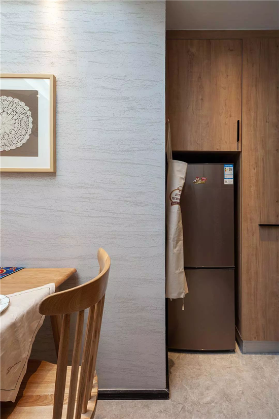 将冰箱隐藏进墙体尽可能的节省空间。