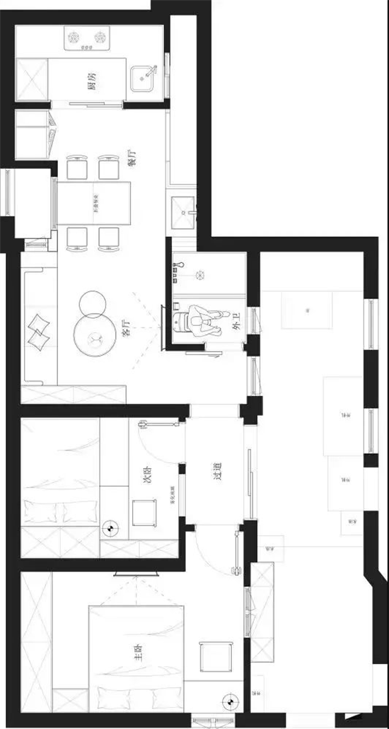 在经过实地勘察和反复讨论验证之后,设计师由伟壮会如何解决这个47平米老宅的霉变、潮湿、采光差的问题呢?户主想要的2室一卫2厅的3口之家能否实现呢?