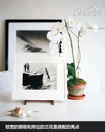 千万不要使用小于2英寸宽的画框,因为会使艺术作品感到很局促,你需要为自己喜爱的作品留足展示的空间。这幅黑与白的照片因为较宽的画框而增强了视觉感。