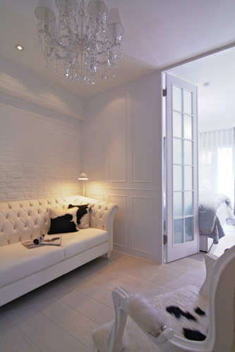 新旧元素的转换设计师操莉玲以文化石的白,定位出沙发背墙的安稳宁静。