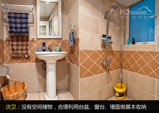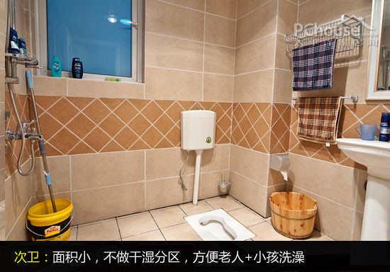 (3)父母年老,通常不是一个人洗澡。如果干湿分区的话,空间太小,洗起来非常不方便。因此保留了次卫的大空间给老人洗漱,以后有了小朋友,也方便大人在这里给小朋友洗澡。