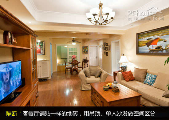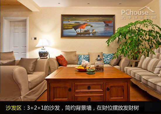 (4)经典的沙发摆位,不同软硬度的家具适合不同年龄层的人,让全家使用起来都很舒服。