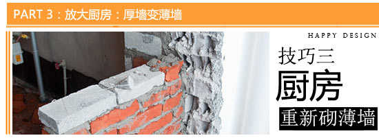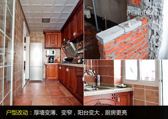 (3)北阳台面积太小(95*178),只能放下小洗衣机,太不实用。因此把厚墙砸掉,重新砌薄墙,窗户向左拓展了25cm。这样不仅增加了厨房的光线,而且加大了阳台可利用面积。不想把生活阳台浪费掉的网友,可以学习博士的这种设计。