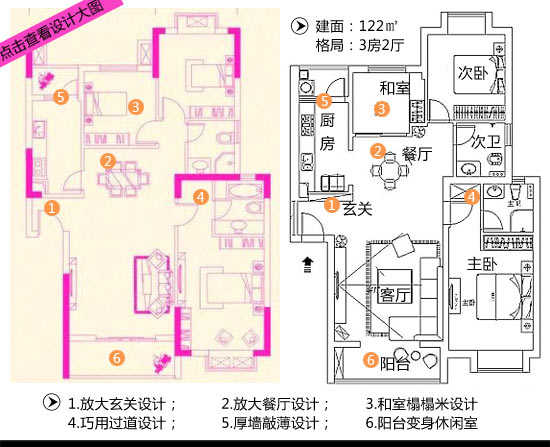 下图是博士家的6个设计亮点。经过这些设计,博士的家明显比邻居的常规设计更实用了。