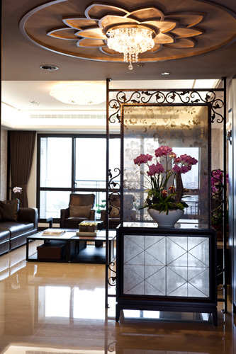 为化解入门即梁体过低的压迫,设计师王光宇呼应屏风图腾以花瓣造型为开展,着墨低调华丽。