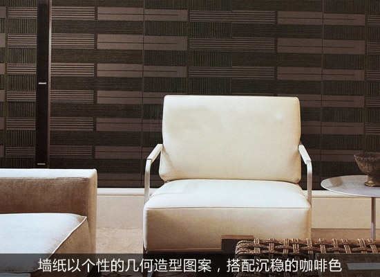 个性的几何造型图案,配上沉稳的咖啡色,仿佛让人置身于深沉的都市夜晚,别有情趣的感性气息。用于卧室背景墙的风格营造,再搭配一盏现代风格的落地灯,更能带出几分安逸宁静的享受。