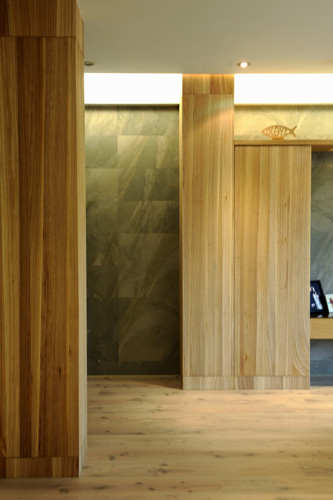 藉由镀钛板与茶镜喷砂的精采表现,在放大视野感受的同时,一并呼应整体风格的延续性。