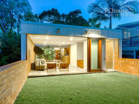 编辑点评:草坪简单清爽,是室内精简风格的延伸,低矮围墙在精简中有了些可爱的趣味。