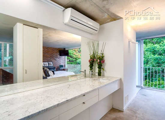 编辑点评:洗手台设置在走道中,既无刻意感,也满足了功能的使用。