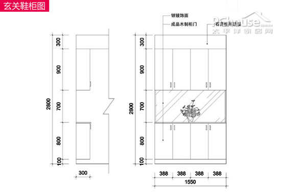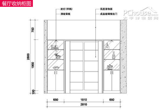 需求3:要有好看而且实用的收纳柜,玄关柜、电视柜、餐边柜、衣柜,风格要和吊顶的一致,要有整体的感觉,其中一个次卧是老人房,要摆放电视机。设计师了解需求后,对室内的柜体做了详细的尺寸设计。