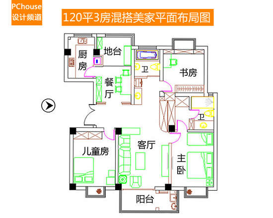 【太平洋家居网 设计频道】在这个求多变求创新的时代,混搭风格已经成为了一种时尚趋势。这套案例的一家三口120平美家就是融合了地中海、田园、美式多种风格,混搭风格让这个家充满了个性、时尚、温馨的味道,让人爱不释手。