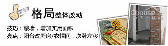 TIPS:可以通过改造空间,增加室内的实用面积。但是需注意,经审核后、非承重墙体才可以敲墙。敲下来的材料不要浪费,可以在填洗手间、砌阳台花坛的时候用到,二次利用。