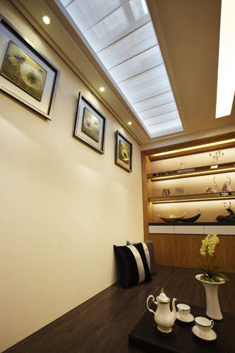 南方松户外露台加上室内泡茶区,卷帘遮掩之间隐私与日晒皆能有所调节。(幸福空间供稿)