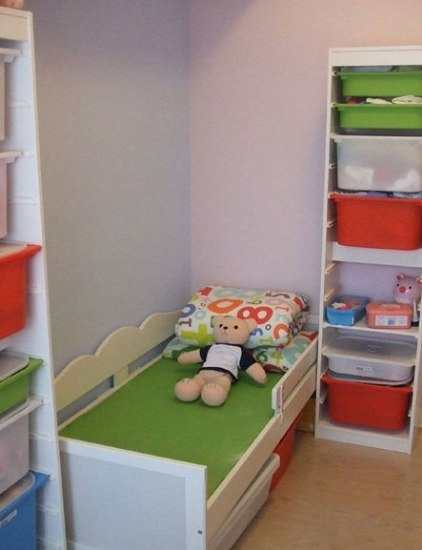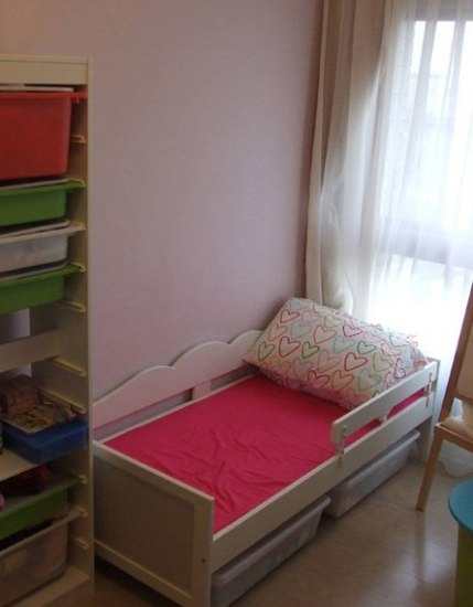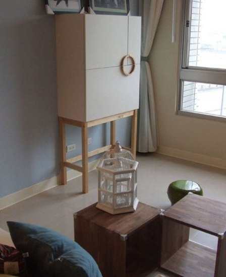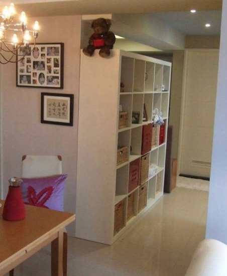儿童房是给宝宝休息娱乐的地方,所以在房里也设有一面写字板,到了一定的年龄周岁,可以教教他认字,旁边偌大的置物柜,则分门别类的放了宝宝的衣服。