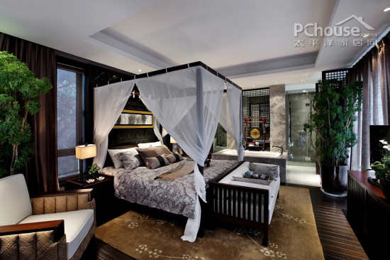 编辑点评:这款卧室的设计,以中国式长方体床架为主角,贯穿少部分抽象西方文化。床头柜的复古设计独具中国古典风味。