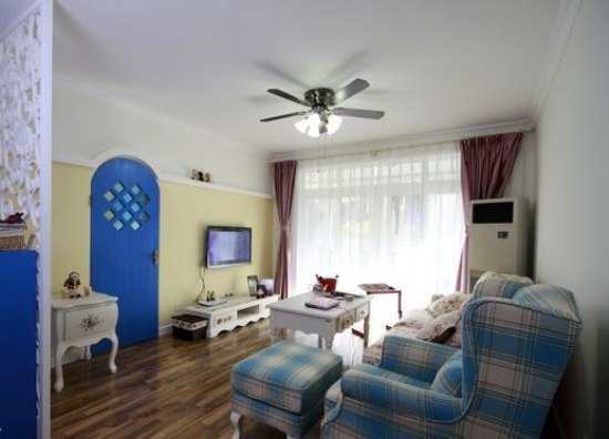 客厅由黄蓝白三种颜色融合而成,简洁明快,时尚氛围十分浓厚。