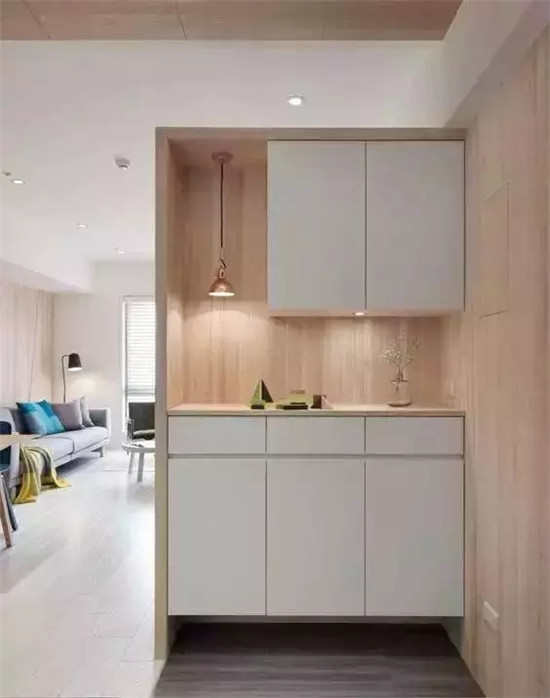 如果在空间和户型允许的条件下,可以在入门处设计一个隔断,将屏风与鞋柜或者衣柜结合起来,既实用又可以很好的化解大门对卫生间门的问题。