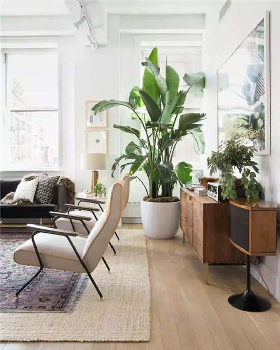 除了用门帘隔断,还可以选择用家居绿植来做掩护,如果条件允许,可以在卫生间门口摆放阔叶植物,最好选择有主干,叶厚,遮挡效果好的绿植,它既可以充当隔断,又能装饰美化家居环境。