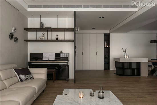 编辑点评:经由沟通了解屋主特殊需求,为陪伴女主人多年的钢琴打造专属区域,上方收纳区可摆放琴谱及相关用品。