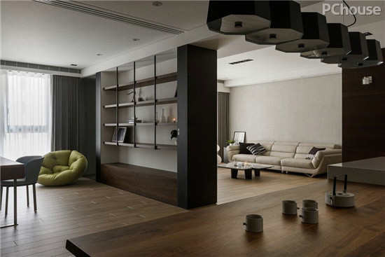 编辑点评:由于横梁量体较大,为空间带来压迫感,经过“一水一木设计工作室”调整格局后,客厅空间完整且无阻碍。