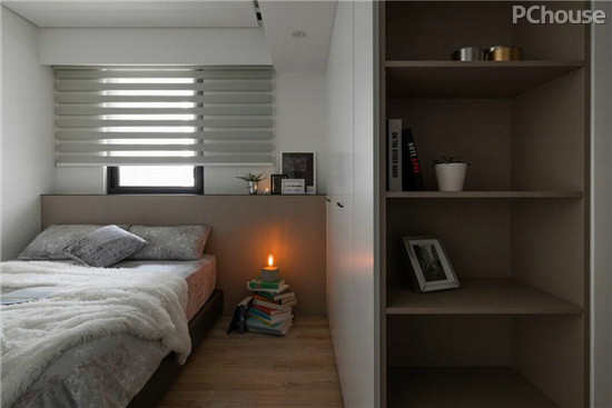 编辑点评:功能完整的孝亲房设计了充足的收纳空间,除了密闭柜体外,面对房门一侧特别规划成开放式层架,可摆放装饰性物品。