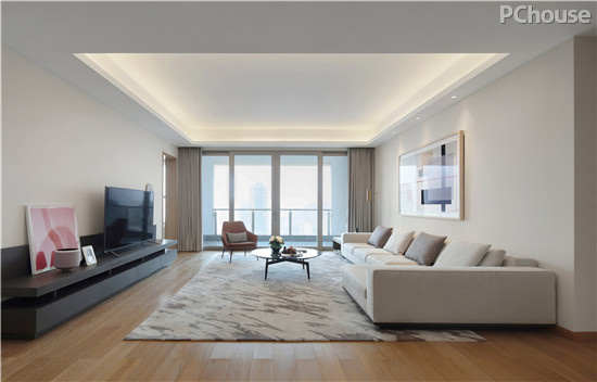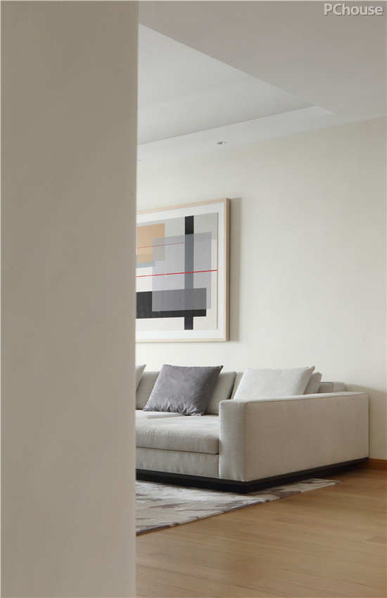 毛绒地毯作为一点点奢美与安逸的点缀,与洒入室内的阳光结合呈现出温暖的情调,为整洁洗练的房间增添了许多质感。