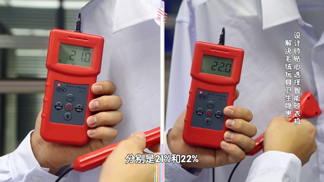 选择两件分别是21%和22%白衬衫进行实验对比,一件放到普通晾衣架自然晾干,另一件开启晾霸极光Q4进行烘干。