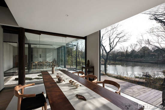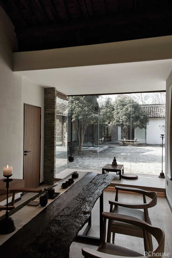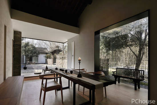 茶室中有着一间大型会议空间,可以在此开设会议、论坛进行交流。品茶观景,让会议变成是一件怡然自得的事情,模糊了规则的边界,也能让思考更加具有效率和意义。