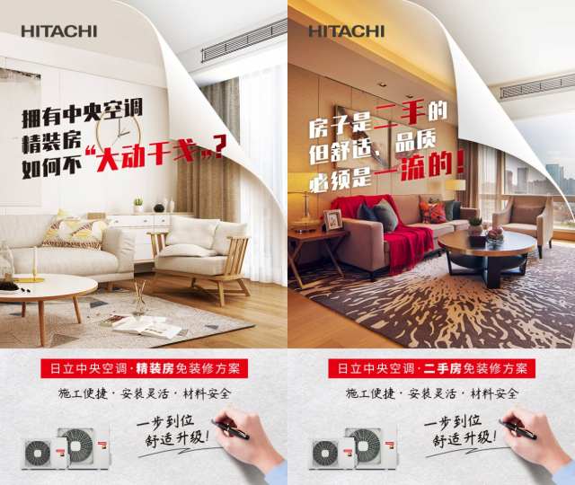 针对目前对中央空调认知度的提高,日立推出了针对精装房与二手房的升级版中央空调免装修方案,满足多种需求,带来真正的舒适升级。