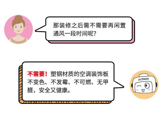 方案采用的不变色、不发霉、不可燃、无甲醛的塑钢材质的空调装饰板,完全不必担心装修后的空气等安全问题,即享凉爽舒适。