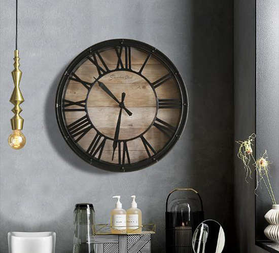 若要呈现满满的工业风,怎么可以少了一款复古挂钟,这款黑色古典挂钟的底盘采用了木纹做旧工艺,而表盘的指针和罗马数字采用黑色金属材质,展现了高级的质感,充满文艺复古气息,挂在烟熏灰色的家居环境中,相互搭配,会收获不一样的惊喜!