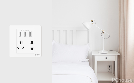 卧室床头安装三USB五孔插座,可以随时满足手机、Ipad等电子设备的充电需求,很方便快捷,再也不用为了寻找充电器而翻箱倒柜了。