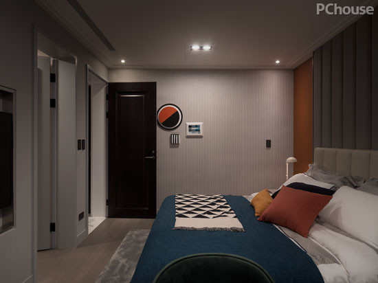为让屋主有着不同感受,我们将卧室订为不同主题,这间带点都会气息,并翻玩色彩。虽有较多大面积色块,但因为将亮度降低,并不会觉得眼花撩乱,反而成了特色亮点。