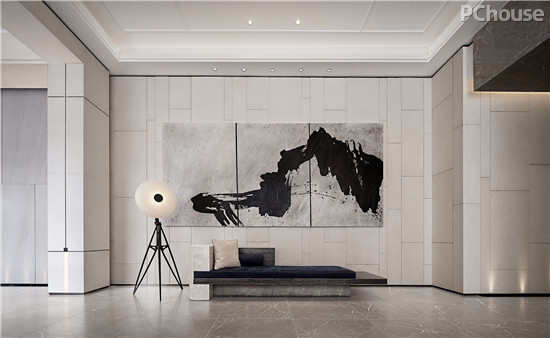 中国画的白描手法,抛却彩色的纷华与璨斓,以清简的线条与笔墨,勾勒出物象的轮廓形态,凝结出画面的丰盈意境。借鉴这一手法,意巢在接待区设计中以简约清朗、亦不乏纤细有力的手笔,让空间气质在缥缈俊逸中脱颖而出,融入东方禅意文化氛围。