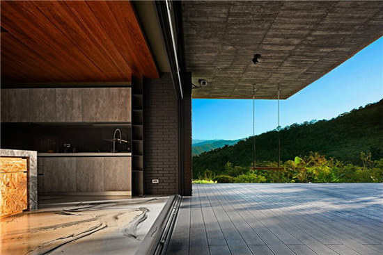编辑点评: 户外平台上,一座秋千静静地徜徉于自然的怀抱之中,吐纳出悠闲二字。