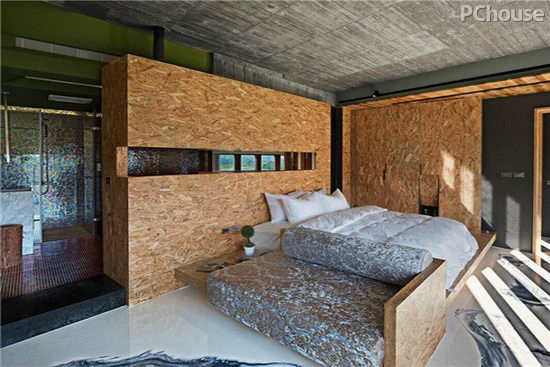 编辑点评: 床头主墙中段镂空,光线、空气可穿梭流动于睡眠及卫浴场域,构筑沉静舒适的空间感受。