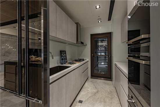 编辑点评:朝中岛吧台区向内走便是独立的厨房,里头机能足以承载料理工作。